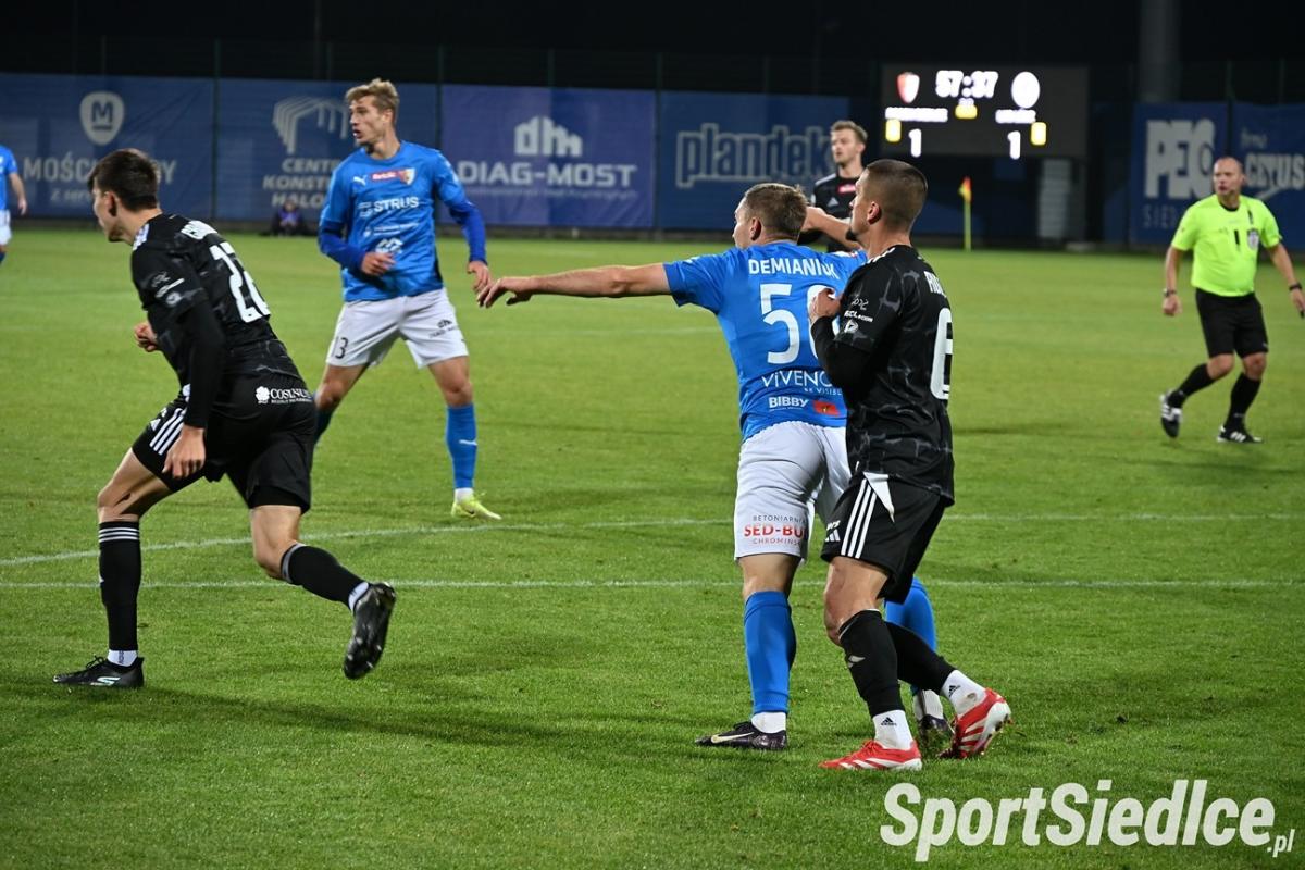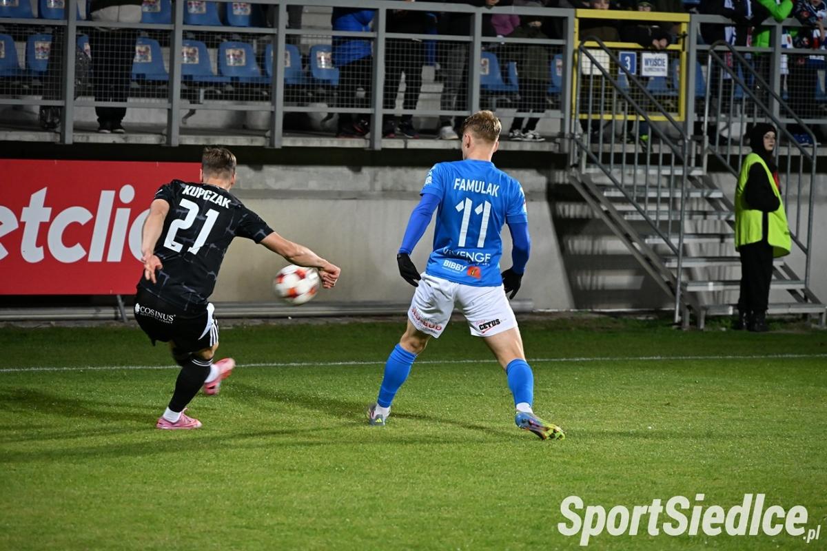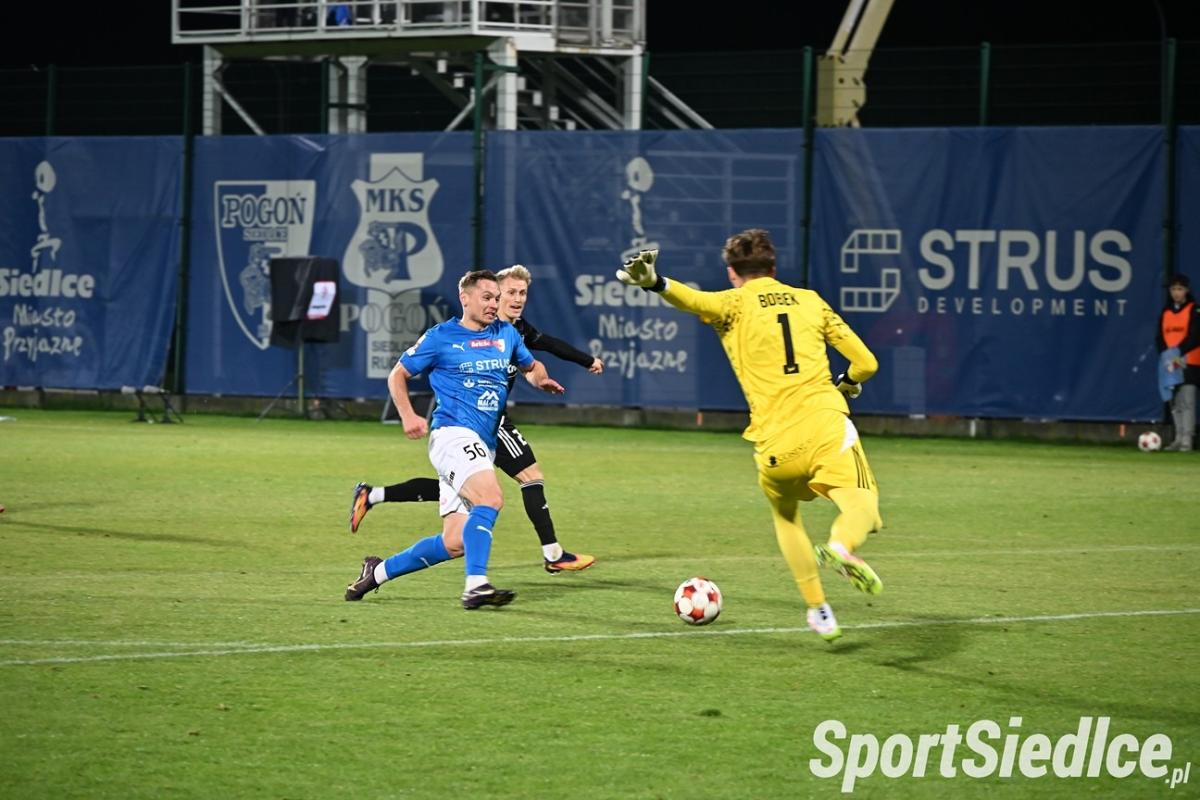 W drugiej połowie Pogoń miała zdecydowanie więcej z gry od rywali. W 61 minucie rozgrywający znakomite spotkanie Maciej Famulak oddał strzał z dystansu, a piłka po odbiciu od Cezarego Demianiuka zaskoczyła golkipera gości. W 72 minucie Damian Szuprytowski podał do Daniela Pika, jednak bohater meczu z Miedzią Legnica trafił jedynie w poprzeczkę. Pięć minut później Miłosz Drąg przestrzelił w znakomitej sytuacji po kapitalnej akcji Famulaka. Wreszcie wysiłki siedlczan popłaciły. Demianiuk był faulowany w polu karnym przez Mokrzyckiego, a sędzia pomocą VARu wskazał na wapno. Do piłki ustawionej na 11 metrze podszedł Marcin Flis i wiadomo co zrobił. Pogoń wygrała 3:1.