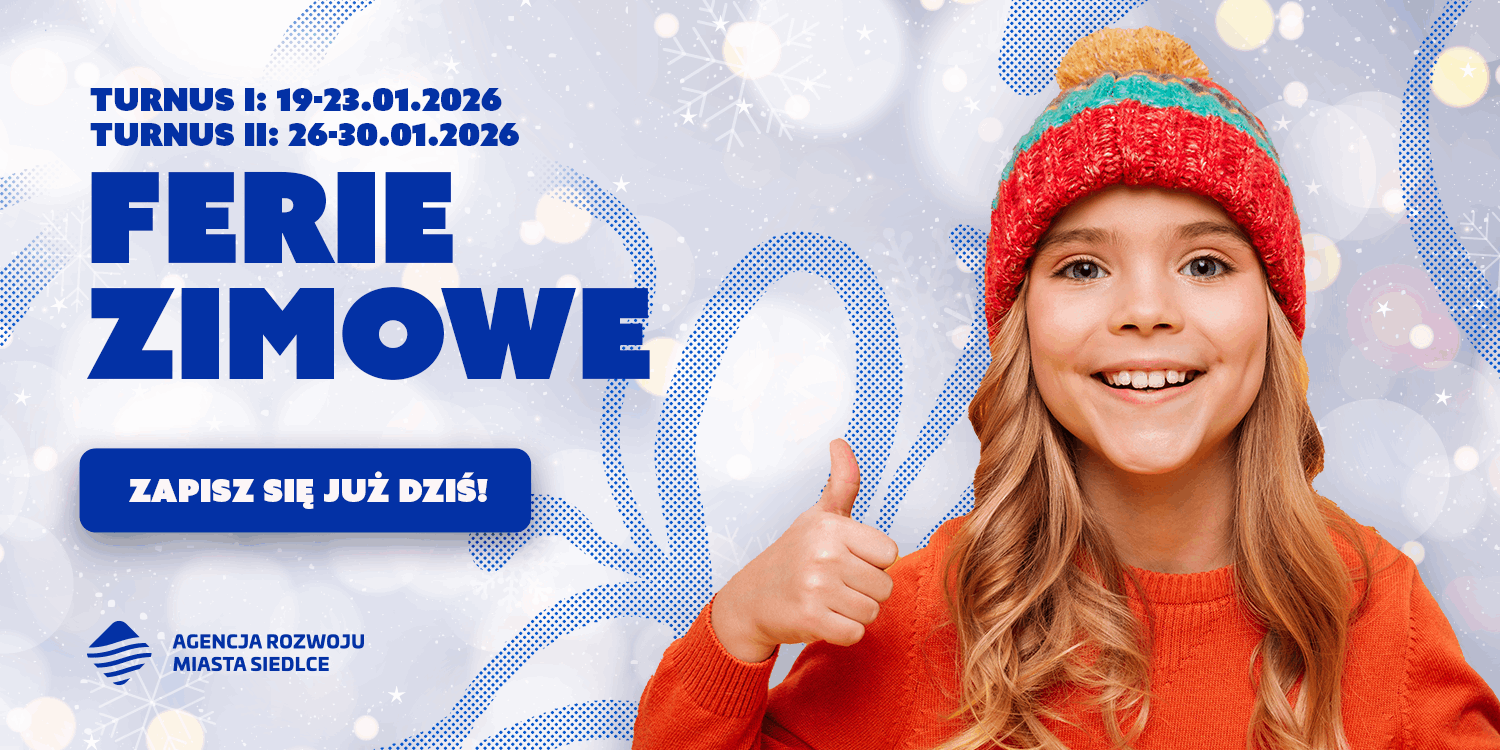 Agencja Rozwoju Miasta Siedlce zaprasza dzieci na zimowe ferie pełne aktywności, kreatywnej zabawy i bezpiecznego wypoczynku. Program został przygotowany z myślą o rozwijaniu pasji, ruchu i integracji uczestników pod opieką wykwalifikowanej kadry.