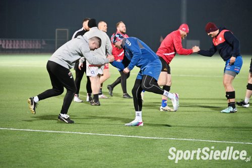 Reportaż z treningu poprzedzającego wiosenną inaugurację Ekstraligi w wykonaniu rugbistów z Siedlec.